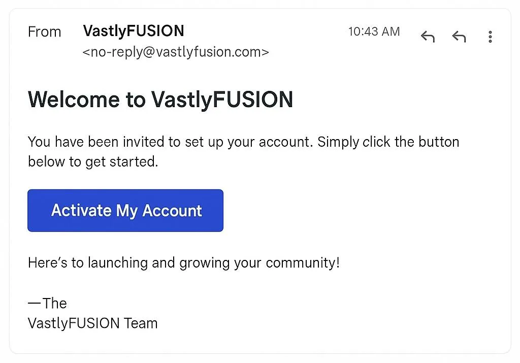 • Look for your welcome email from VastlyFUSION.