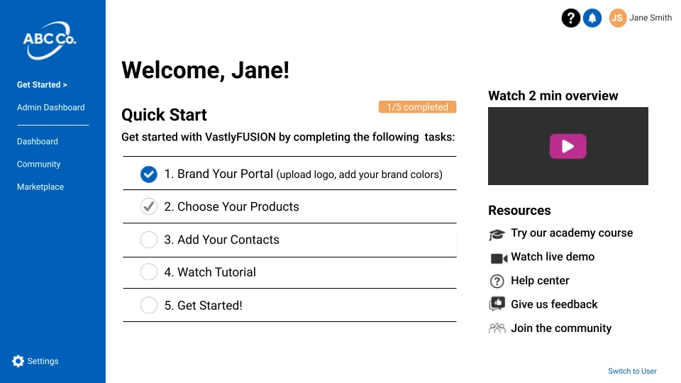 community and start using your dashboard, marketplace, and tools.
